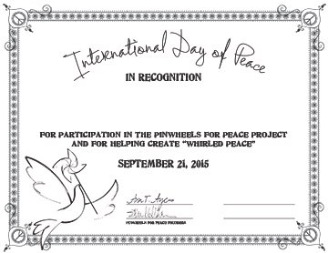 If you would like to print out a certificate to give to your Peace Day participants, download this file pinwheel certificate 2015.pdf